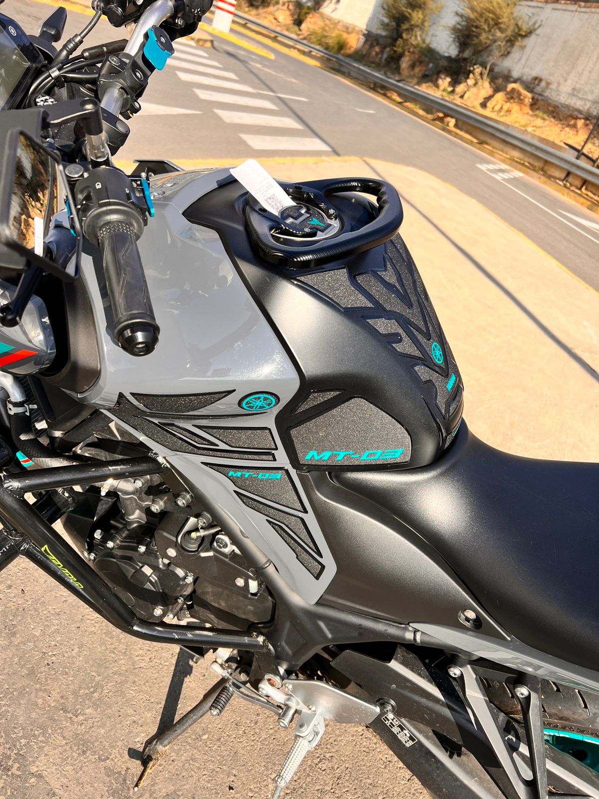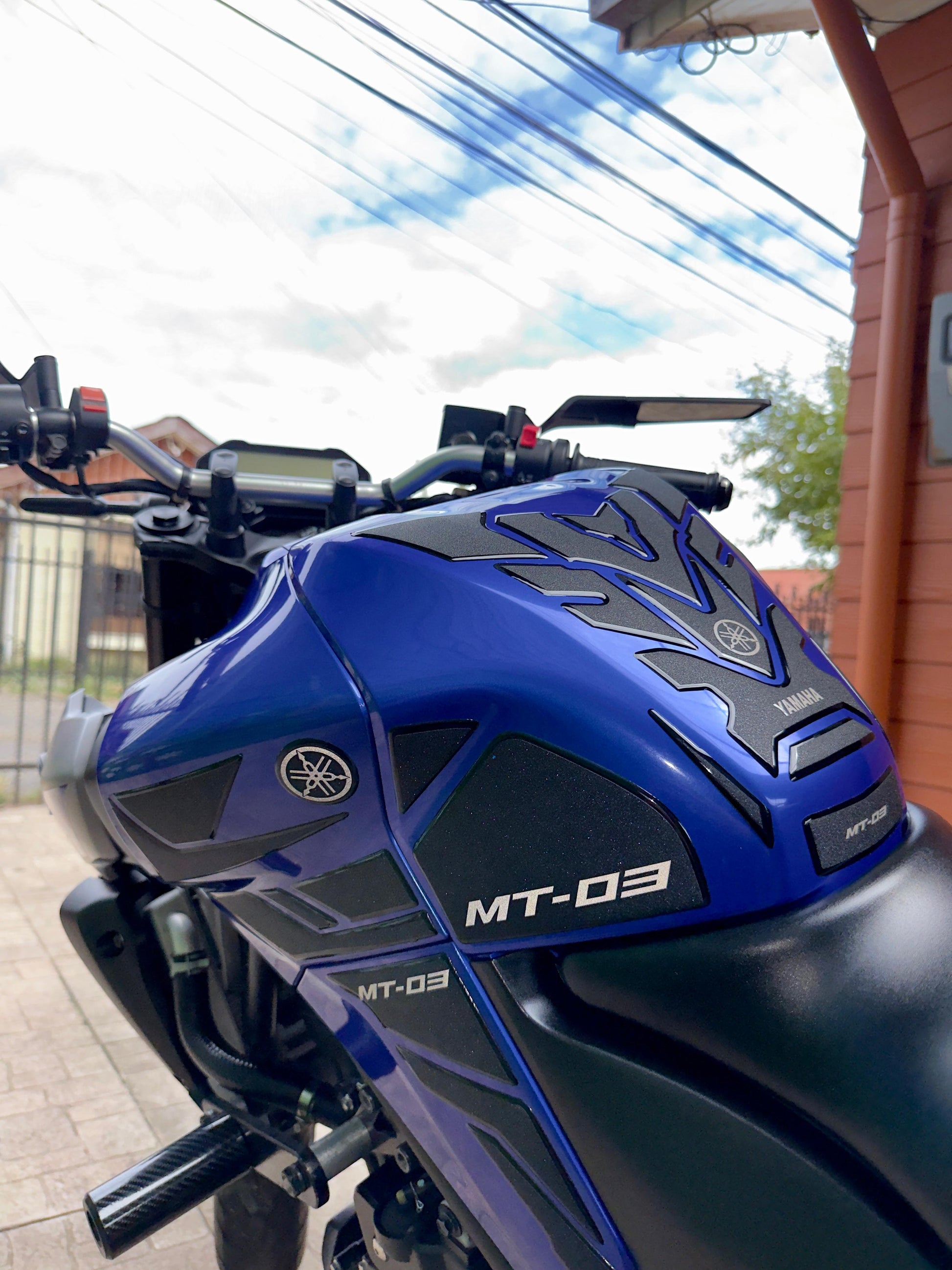 Dale a tu Yamaha MT-03A un toque único y deportivo con nuestro exclusivo kit cubre estanque en lija escarchada. Fabricado con resina americana de calidad premium, protege tu moto de rayones y desgaste, mientras resalta su estilo.