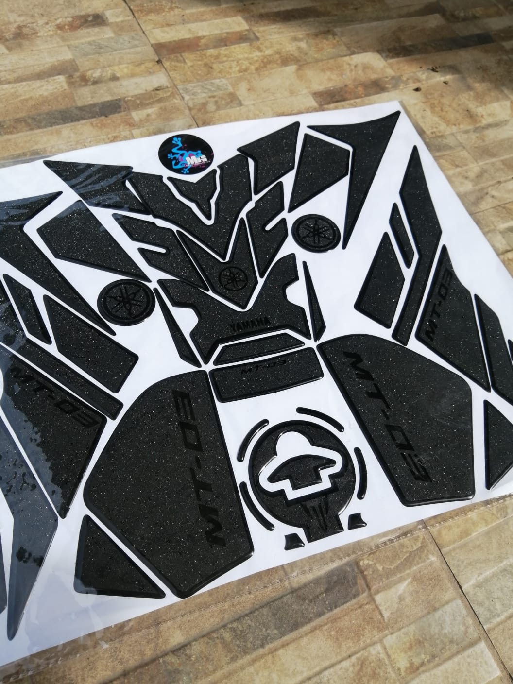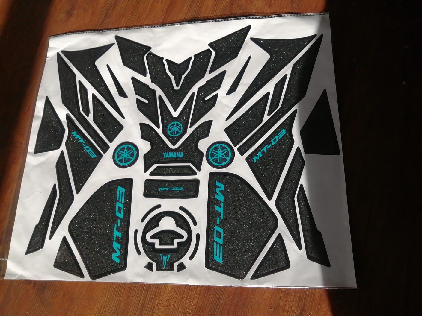 El kit incluye piezas para el frontal, laterales y tapa del estanque, cada una diseñada para calzar perfectamente con las formas de la MT-03A, logrando una instalación precisa y un acabado profesional.