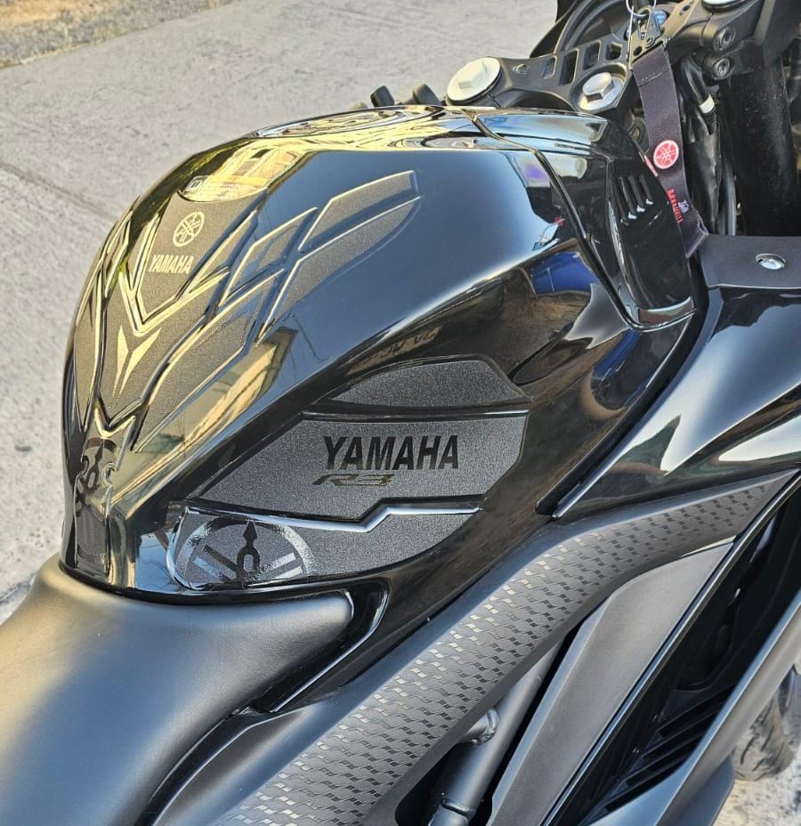 Dale a tu Yamaha R3A un toque único y deportivo con nuestro exclusivo kit cubre estanque en lija escarchada. Fabricado con resina americana de calidad premium, protege tu moto de rayones y desgaste, mientras resalta su estilo.